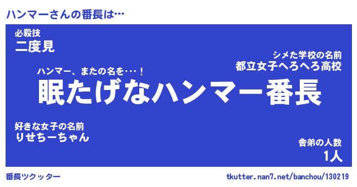 | ポケモン風あだ名 | 『ハンチュウ』『ハンマダネ』 |
