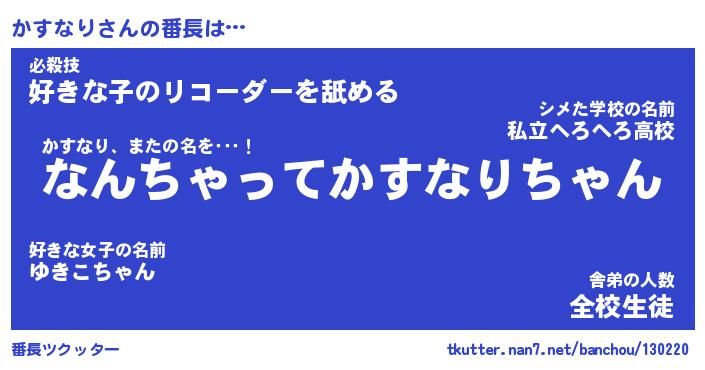 | 意味不明あだ名 | 『ペロリンかすなり』『永久保存かすなり』 |