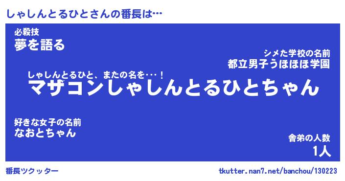 | ヘコむあだ名 | 『しゃにゅー』『豆乳』『しゃっぺ』 |