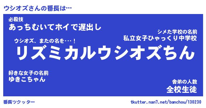 | ファンタジー風あだ名 | 『ウシフェル』『エターナルウシオズー』 |