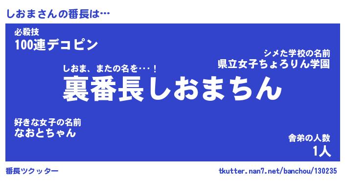 | ヒーロー風カッコイイあだ名 | 『スーパーシオマ』『ウルトラしおまマン』 |