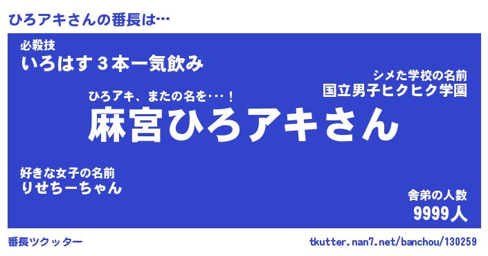 | ヒーロー風カッコイイあだ名 | 『スーパーヒロアキ』『天弓騎士ヒロ』 |