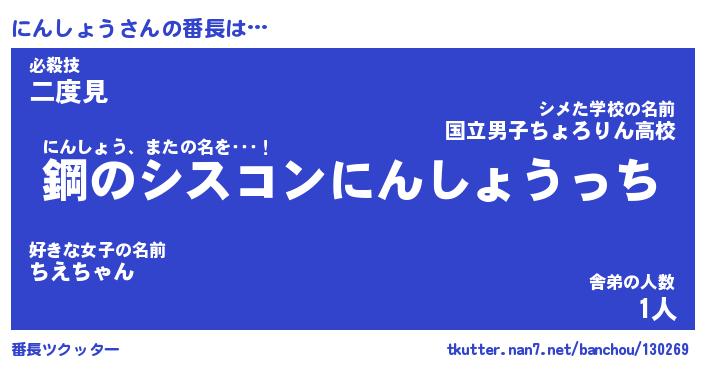 | ファンタジー風あだ名 | 『ニンフェル』『エターナルニンショウー』 |
