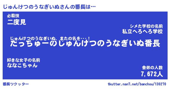 | ヒーロー風カッコイイあだ名 | 『スーパージュンケツノウナギイヌ』 |