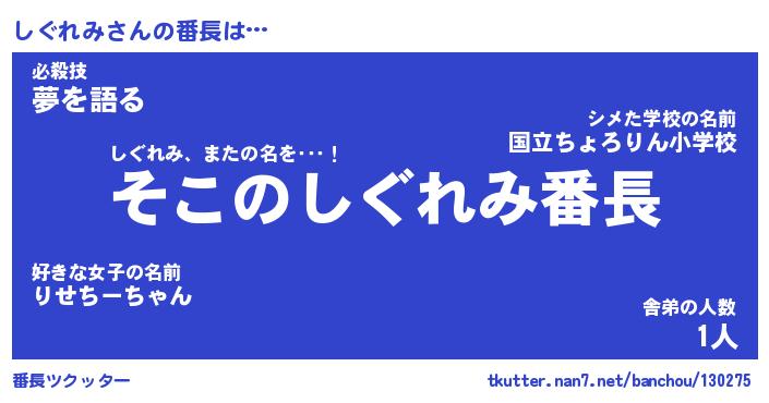 | 2回繰り返すあだ名 | 『しぐしぐ』『ししぐぐ』『いそいそ』 |