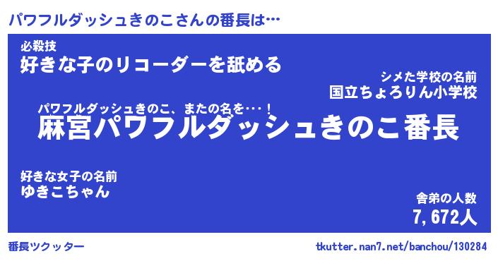 | 男性向けラノベタイトル風あだ名 | 『パワフルダッシュキノコアートオンライン』 |