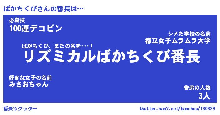 | ポケモン風あだ名 | 『バカチュウ』『バカチダネ』 |
