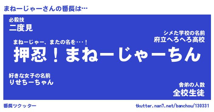| 肩書あだ名 | 『まねーじゃー店長』『まねーじゃー団長』 |