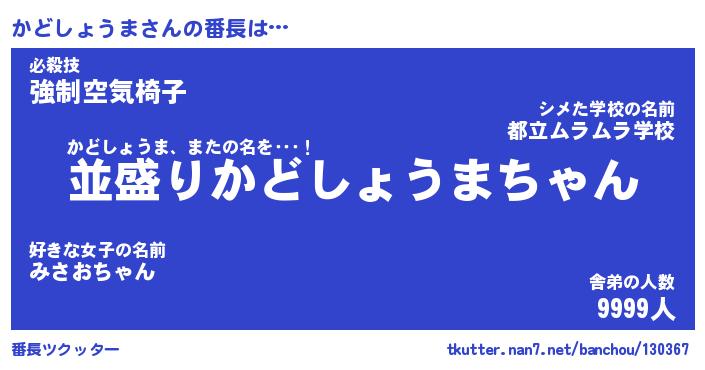| 肩書あだ名 | 『かどしょうま店長』『かどしょうま班長』 |