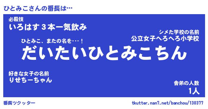 | ファンタジー風あだ名 | 『ヒトフェル』『エターナルヒトミコー』 |