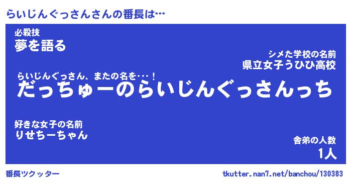 | ヘコむあだ名 | 『らいにー』『つくし』『らいっぺ』 |