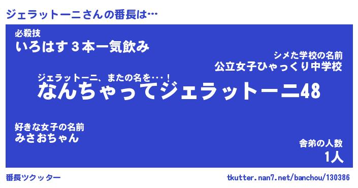 | 男性向けラノベタイトル風あだ名 | 『ジェラットーニの憂鬱』 |