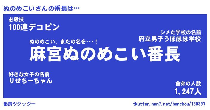| ファンタジー風あだ名 | 『ヌノフェル』『エターナルヌノメコイー』 |