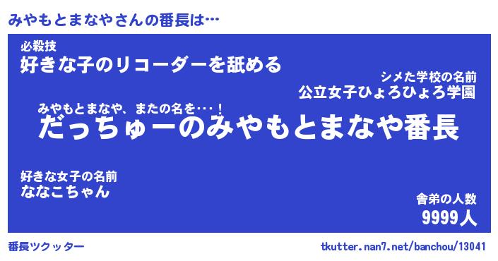 | 意味不明あだ名 | 『ペロリンみやもとまなや』 |