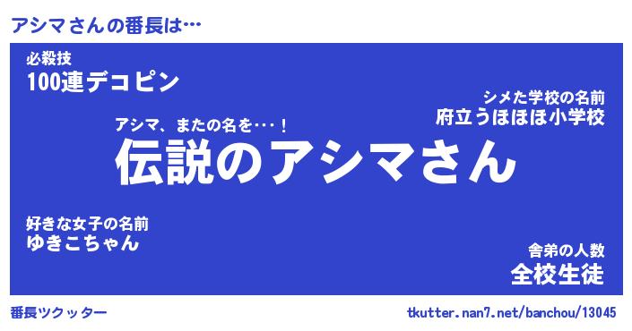 | ヒーロー風カッコイイあだ名 | 『スーパーアシマ』『ウルトラアシママン』 |
