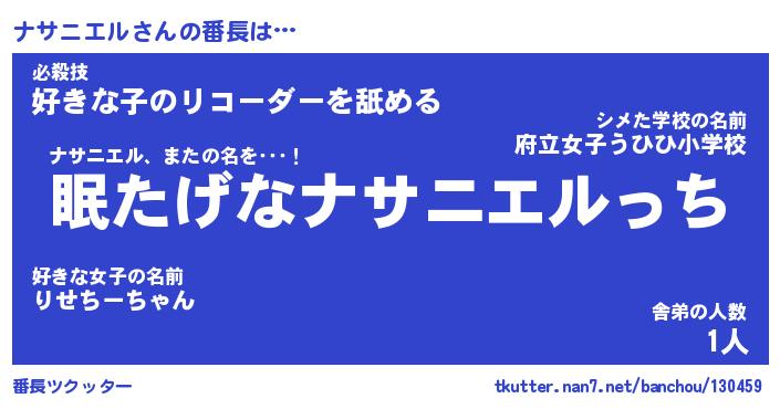 | 肩書あだ名 | 『ナサニエル御曹司』『ナサニエル塾長』 |