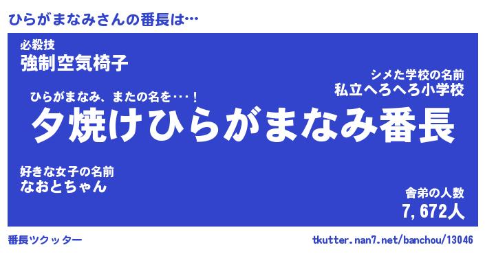 | ヘコむあだ名 | 『ひらにゅー』『つくし』『ひらお』 |
