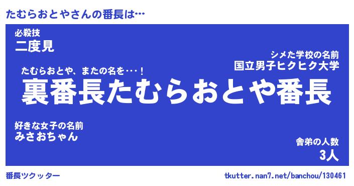 | 2回繰り返すあだ名 | 『たむたむ』『たたむむ』『おらおら』 |
