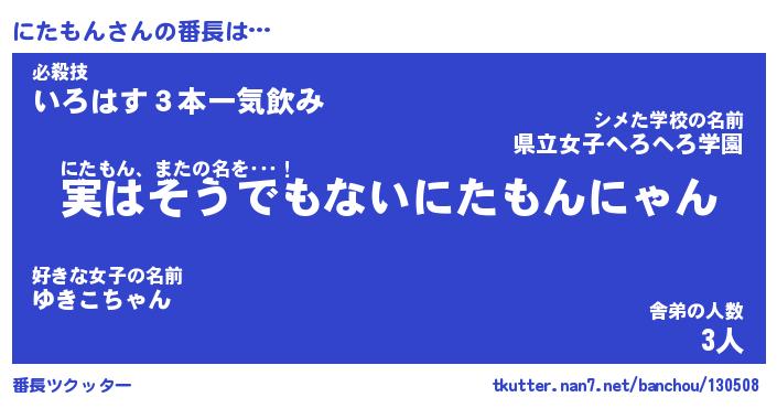 | ファンタジー風あだ名 | 『ニタフェル』『エターナルニタモンー』 |