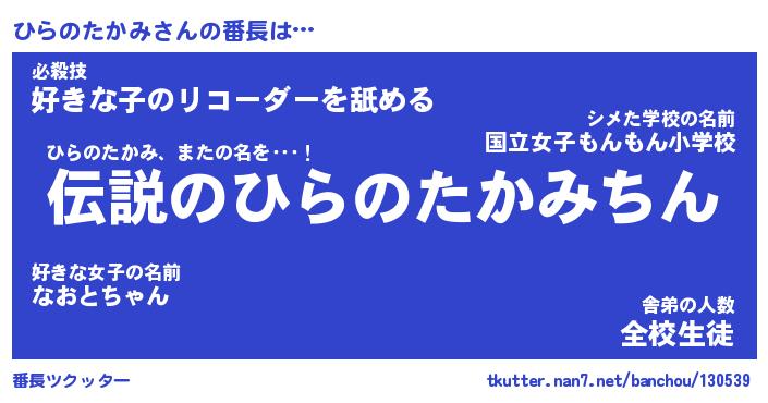 | ヒーロー風カッコイイあだ名 | 『スーパーヒラノタカミ』『暗黒騎士ヒラ』 |
