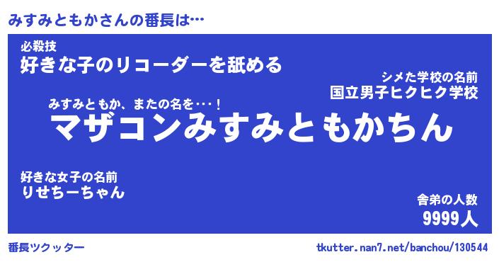 | 肩書あだ名 | 『みすみともか社長』『みすみともか教頭』 |