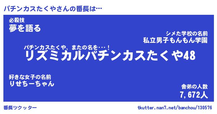 | ヒーロー風カッコイイあだ名 | 『スーパーパチンカスタクヤ』 |