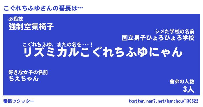 | 伝説のあだ名 | 『伝説のスナイパーこぐれちふゆ』 |