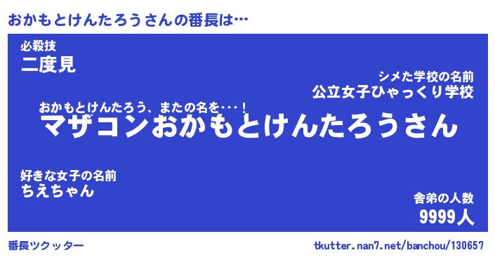 | 伝説のあだ名 | 『封印されしスナイパーおかもとけんたろう』 |