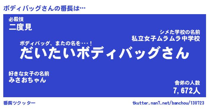 | ヒーロー風カッコイイあだ名 | 『スーパーボディバッグ』『炎刃騎士ボデ』 |