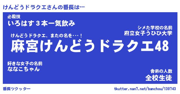 | 伝説のあだ名 | 『不死鳥のスナイパーけんどうドラクエ』 |