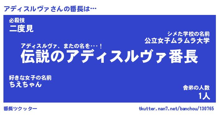 | 男性向けラノベタイトル風あだ名 | 『アディスルヴァの憂鬱』 |