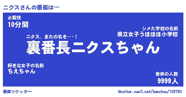 | 意味不明あだ名 | 『ペロリンニクス』『ニクスフォーエバー』 |