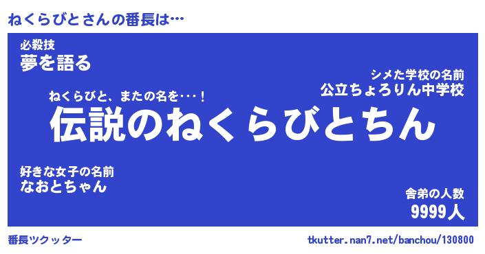 | 伝説のあだ名 | 『伝説のスナイパーねくらびと』 |