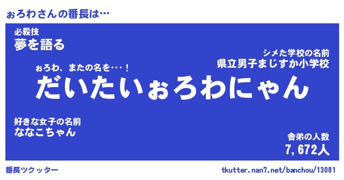| 肩書あだ名 | 『ぉろわ御曹司』『ぉろわ国家主席』 |