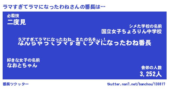 | ヘコむあだ名 | 『ラマっふぃ~』『酢こんぶ』 |