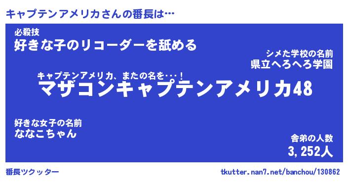 | 男性向けラノベタイトル風あだ名 | 『キャプテンアメリカアートオンライン』 |