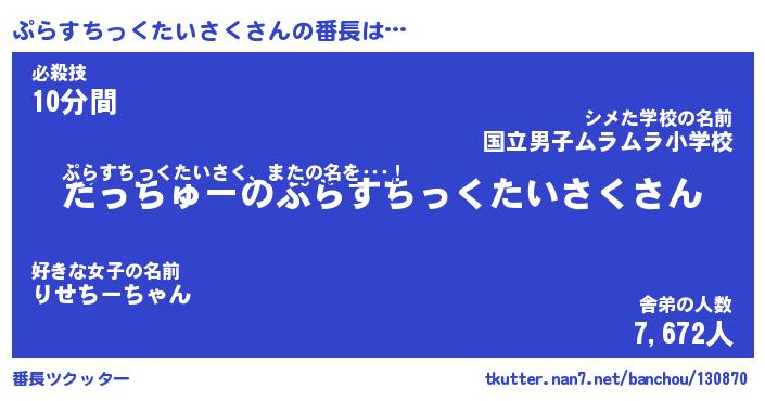| 2回繰り返すあだ名 | 『ぷらぷら』『ぷぷらら』『ぬるぬる』 |