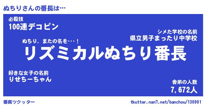 | 男性向けラノベタイトル風あだ名 | 『ぬちりの憂鬱』 |