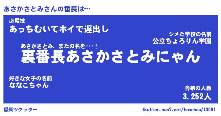 | ポケモン風あだ名 | 『アサチュウ』『アサカダネ』 |