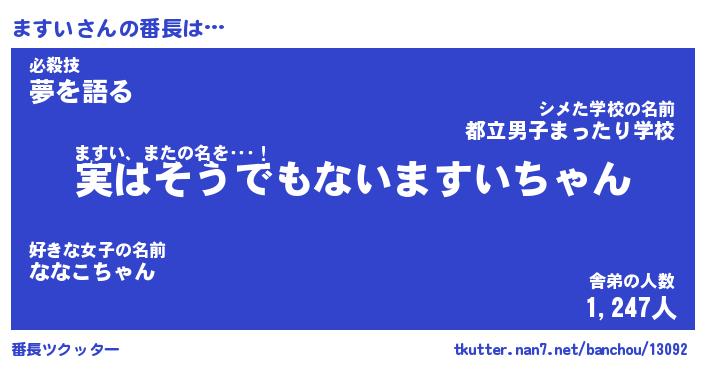 | 意味不明あだ名 | 『ペロリンますい』『ますいフォーエバー』 |
