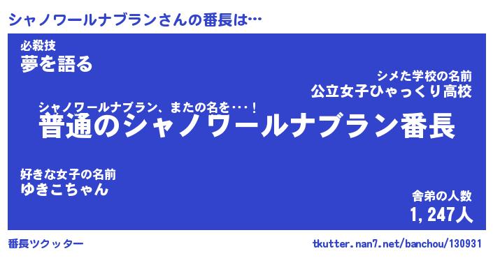 | 男性向けラノベタイトル風あだ名 | 『シャノワールナブランの憂鬱』 |