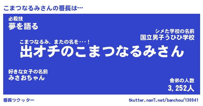 | ヒーロー風カッコイイあだ名 | 『スーパーコマツナルミ』『暗黒騎士コマ』 |
