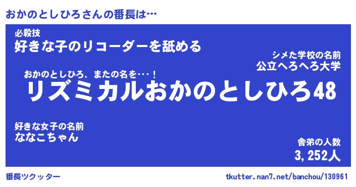 | 伝説のあだ名 | 『伝説のスナイパーおかのとしひろ』 |