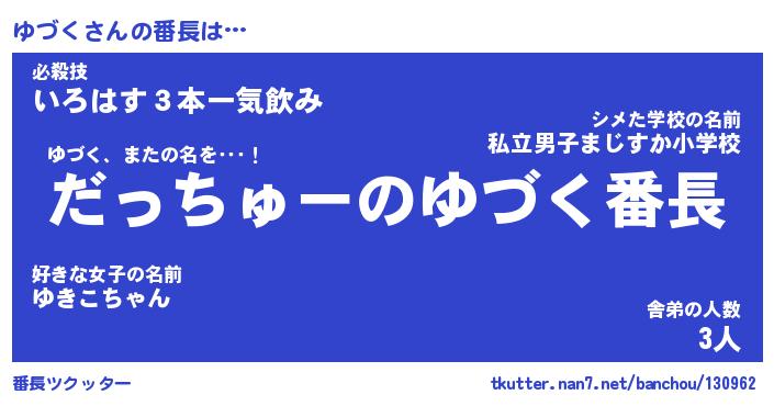 | ピコ太郎風あだ名 | 『ユコ五郎』『ピユ次郎』『ユヅ二郎』 |