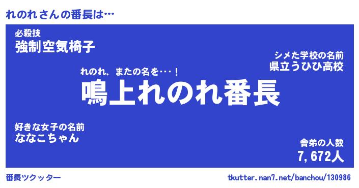 | ヒーロー風カッコイイあだ名 | 『スーパーレノレ』『ウルトラれのれマン』 |
