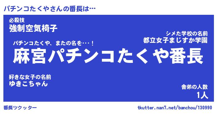 | 伝説のあだ名 | 『不死鳥のスナイパーパチンコたくや』 |