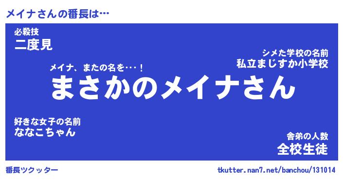 | 意味不明あだ名 | 『ペロリンメイナ』『メイナフォーエバー』 |