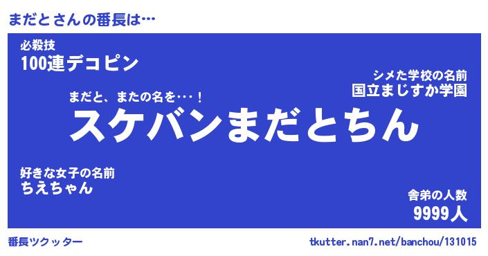 | 肩書あだ名 | 『まだと店長』『まだと総理大臣』 |