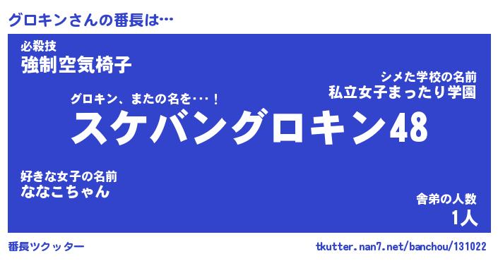 | ファンタジー風あだ名 | 『グロフェル』『エターナルグロキンー』 |