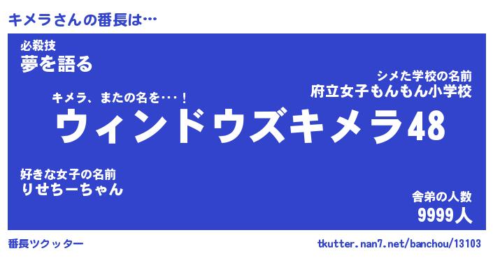 | 意味不明あだ名 | 『ペロリンキメラ』『キメラフォーエバー』 |